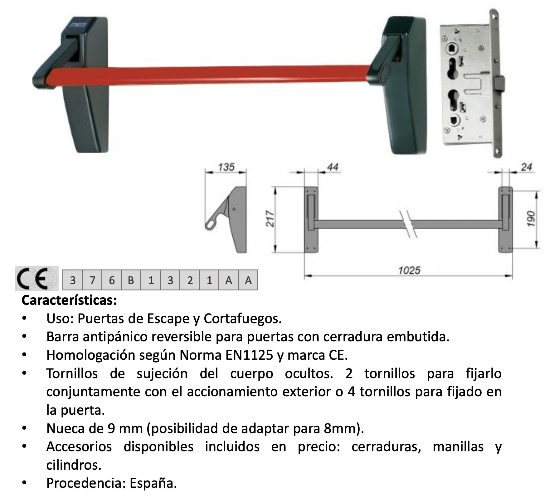 • Barra antipánico de embutir con cierre lateral. Soporte Negro - Barra Verde